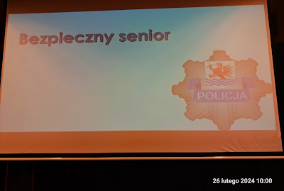 Wyk;ad pt. “Bezpieczeństwo seniorów ” – Jakub Bagiński – oficer prasowy Komendy Miejskiej w Słupsku – wykład z mediami lokalnymi oraz zaproszonymi gośćmi.- 26.02.2024r.